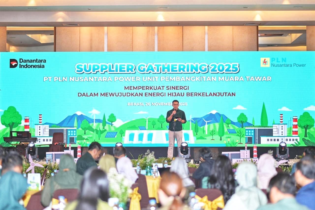 PJ.BEKASI – PT PLN Nusantara Power Unit Pembangkitan (UP) Muara Tawar terus memperkuat hubungan strategis dengan para penyedia barang dan jasa melalui penyelenggaraan Supplier Gathering bertema “Memperkuat Sinergi dalam Mewujudkan Energi Hijau Berkelanjutan”.